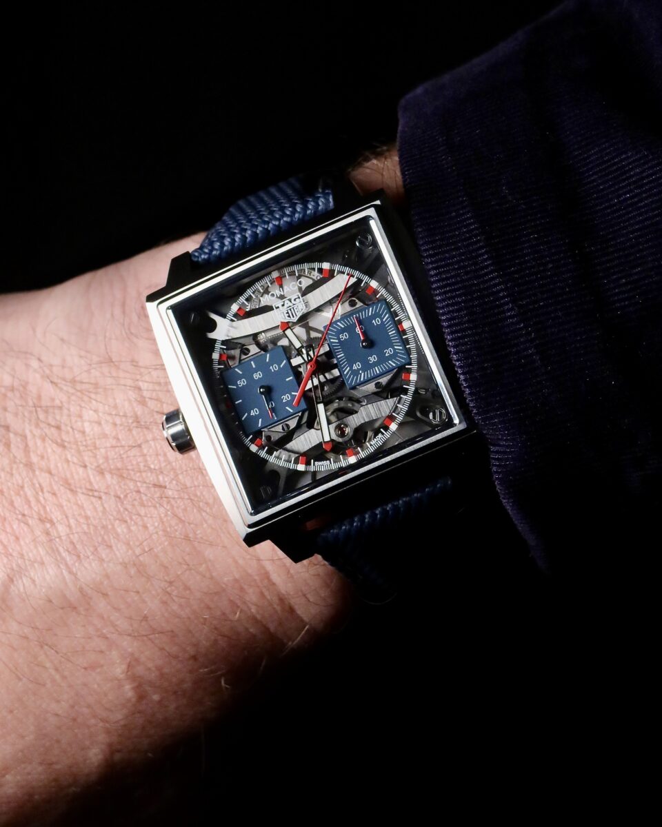 It’s a massive step forward in the way that chronograph movements are designed and manufactured, and flawlessly debuted inside one of the most iconic chronographs in history: the Monaco. With 70 hours of power reserve, 100m of water resistance, and your choice of a blue or black skeletonised dial, it’s a sports chronograph for the 21st century.