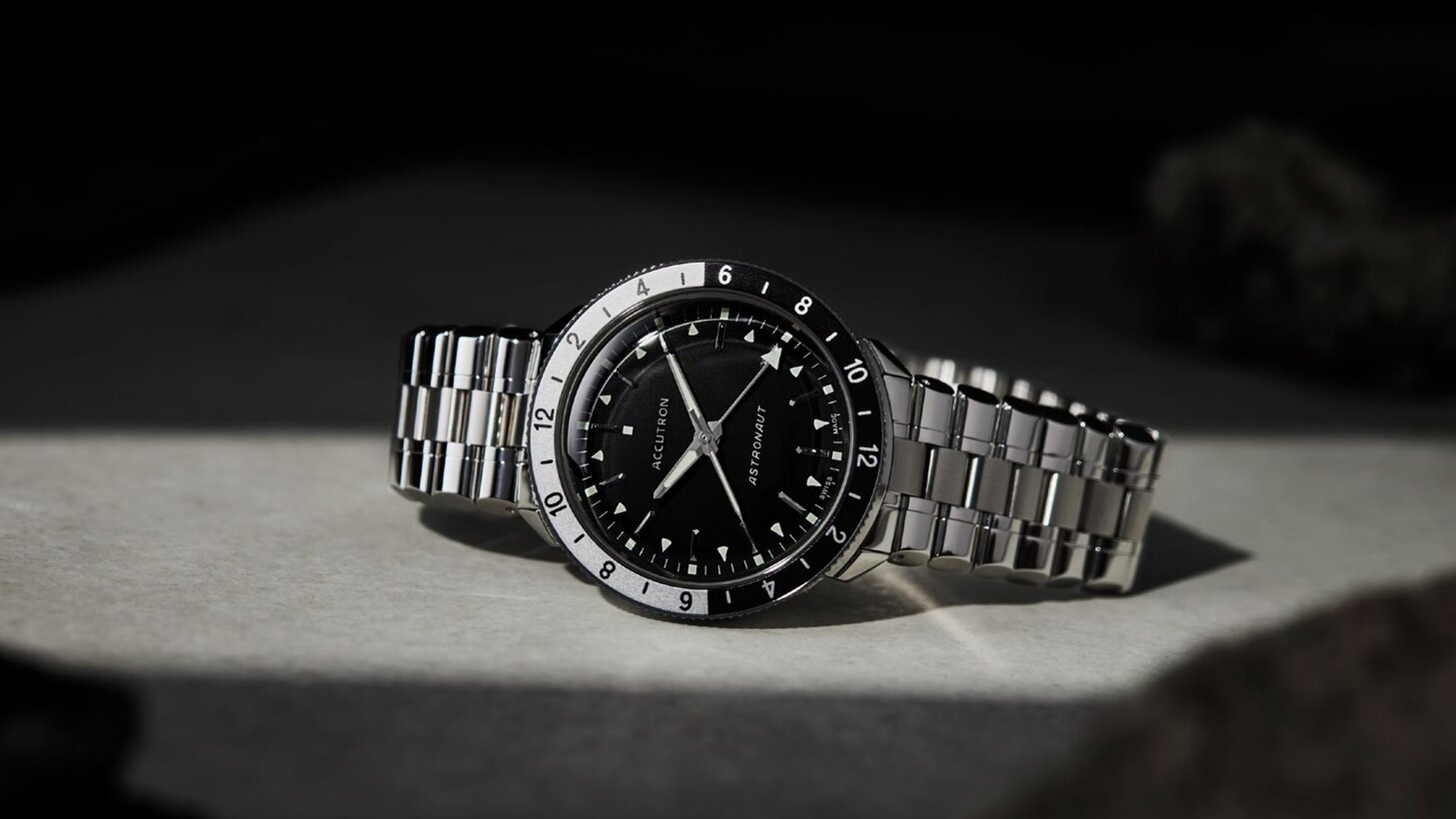 In the 1960s at the height of the space race, all Mercury 7 astronauts wore Bulova Accutron Astronaut watches on missions, and it was also selected as the watch of choice for the CIA pilots behind the controls of Lockheed Martin’s Skunk Works A-12 spy plane, cementing its place in the history books. Now, it’s back, featuring a 41.5mm stainless steel case that measures 13.85mm thick and is easily recognisable thanks to its two-tone 24-hour scale bezel that pairs with the second timezone tracking GMT hand.