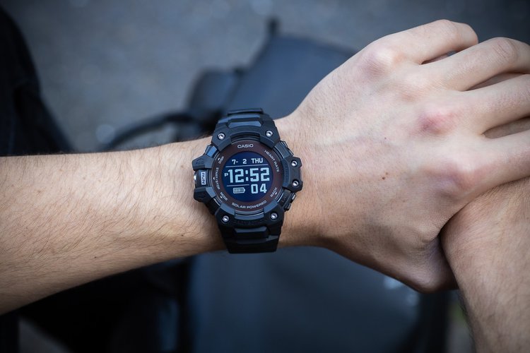 The G-SHOCK GBD-H1000 promises to provide real-time measurements with five-sensor functions. Thatโs optical sensors to detect your blood flow and pulse, a triple-axis accelerometer to detect your movements and accurately pinpoint distance, as well as magnetic, pressure, and thermo sensors for everything else.