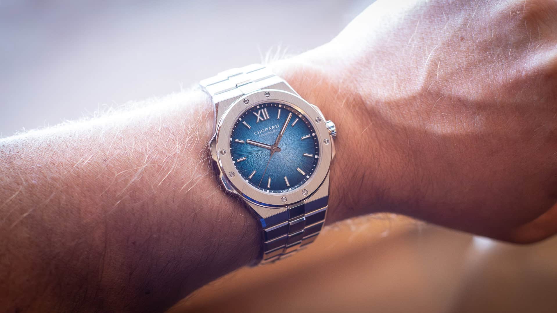 Its ultra-thin 41mm case and newly sculpted bracelet are crafted from 950 platinum, framing a โShades of Iceโ blue dial which sings without being impeded by the Alpine Eagleโs traditional Roman numerals. Powered by the chronometer-certified L.U.C 96.42-L calibre, with a platinum micro-rotor and 65-hour reserve, it carries both COSC and Poinรงon de Genรจve certifications. A new (but historical) bee hallmark marks this rare material.
