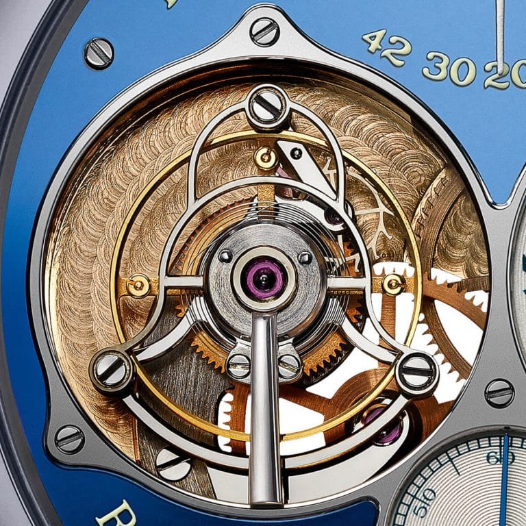 One example of this is Journeโs take on the tourbillon. I wonโt bore you with mechanical jargon, but essentially a tourbillon is a complication designed to offset the effects of gravity on timekeeping in a pocket watch. Now this works in a pocket watch because it would sit in the vest or shirt pocket vertically โ and the tourbillon was designed to work as such. When applied to a wristwatch, however, the tourbillon was not effective as the watch spends most of its life horizontally.
