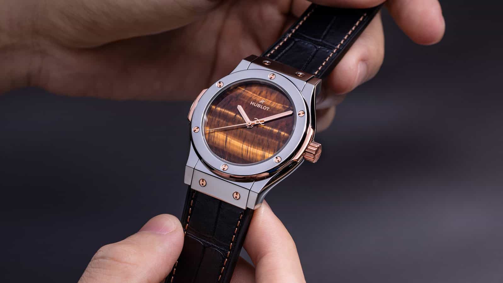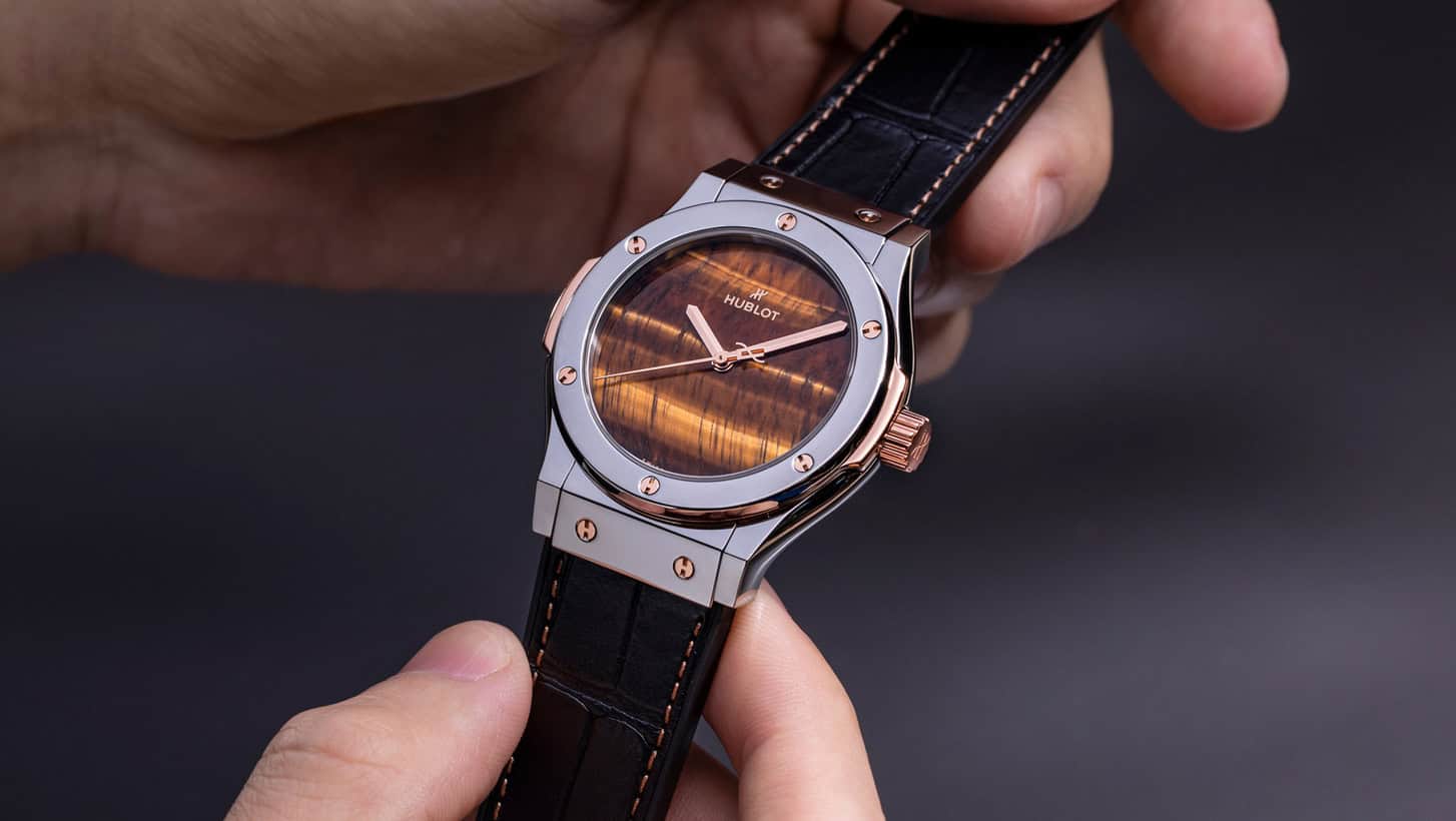 Hublot is no stranger to creating special edition wristwatches, but its latest collaboration with Singaporian retailer The Hour Glass might be one of its most impressive to date. The Hublot Classic Fusion Elements collection takes the reserved aesthetic of the original Hublot timepiece, and dials it up to 11 with dials made from five different semi-precious stones in tigerโs eye, red jasper, malachite, turquoise and lapis lazuli.