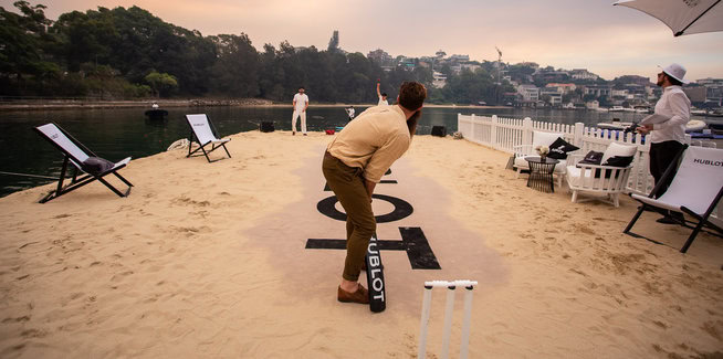 Never a brand known for their subtlety, Hublot kicked off Aussie summer with a (big) bang in Rose Bay last week, creating a floating beach cricket pitch on a barge in Sydney Harbour -demonstrating the brandโs philosophies of being first, different and unique. The Hublot Loves Summer event celebrated the iconic Australian tradition of beach cricket and the opening of Hublotโs first ever-Australian boutique in Sydney CBD on King Street, slated for late December.
