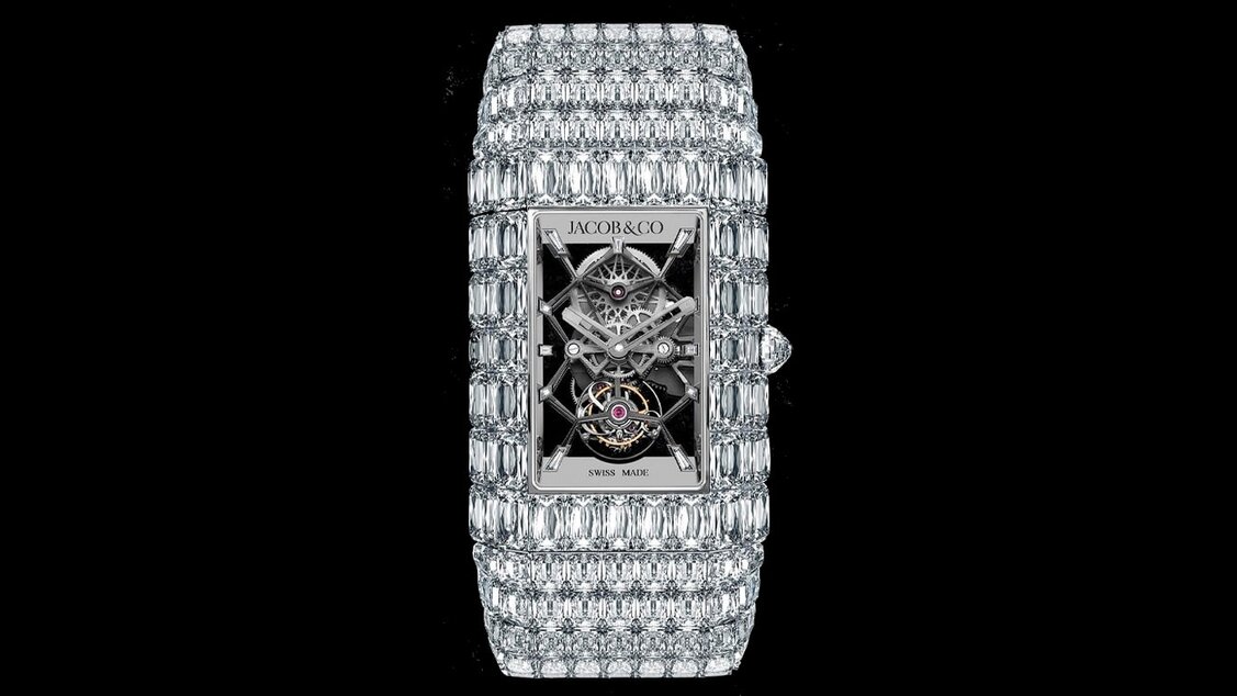 With a distinct rectangular shape highlighted by the skeletonised calibre JCAM09 tourbillon movement, this mind-numbingly opulent timepiece is comprised of 167 elements, 19 jewels, and brings a 72-hour power reserve to the table. The 19 jewels themselves have been divided into 62 individual examples to completely cover the case, bracelet, and clasp. But you didnโt need me to tell you where to look for โem.