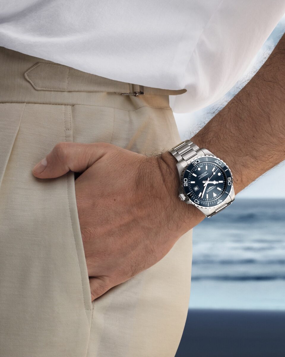 The headline is a full redesign across 39mm and 42mm automatic models, with a cleaner dial that does away with the 6, 9, and 12 numerals of years gone by, fresh ceramic bezels, and a stronger sense of polish overall. It still looks every bit the sporty Longines diver, but now there’s more restraint to it that makes it feel less like a brute-force tool watch, more like an everyday all-rounder that also happens to be good for 300 metres of water resistance.