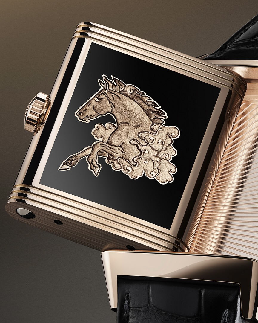Jaeger-LeCoultre knows how to put the caseback of its legendary Reverso to good use, and for the Year of the Horse, it’s used Grand Feu enamel on the pink gold canvas to depict a horse in exacting detail.
