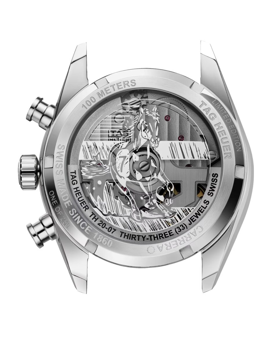 Using the watchmaker’s 39mm Carrera Chronograph as a template, it features a champagne gold main dial that nicely contrasts against a strong red chronograph subdial, while at 9 o’clock, you’ll spot an aperture with the Chinese character ้ฉฌ (translating simply to horse).