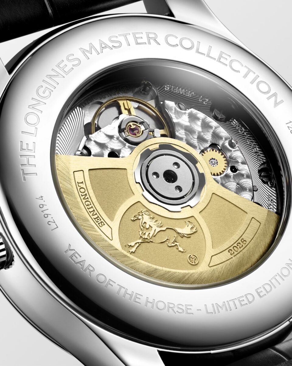 If you’ve come across Longines’ Master Collection line-up before, the baseline specs of this watch will be familiar. It’s got a 42mm stainless steel case, moonphase and date display at 6 o’clock, and an exhibition caseback showing off the calibre L899 that powers the watch.