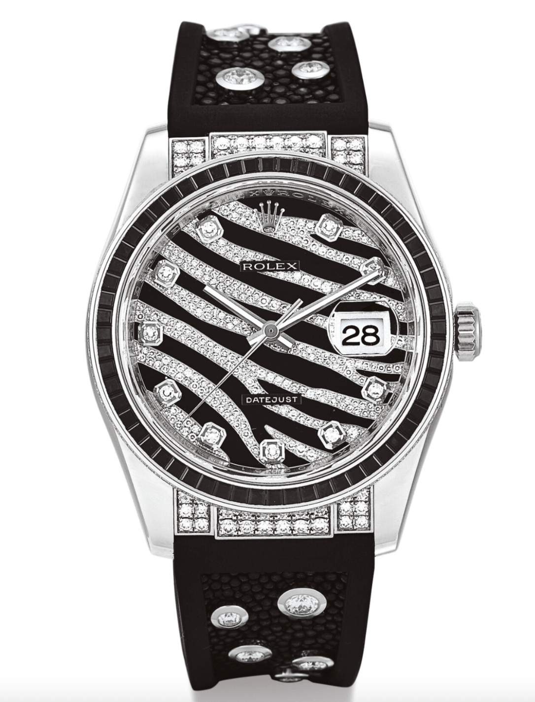 Rolex DateJust โZebraโ ref. 116199SANR In White Gold With Diamonds & Black Sapphires