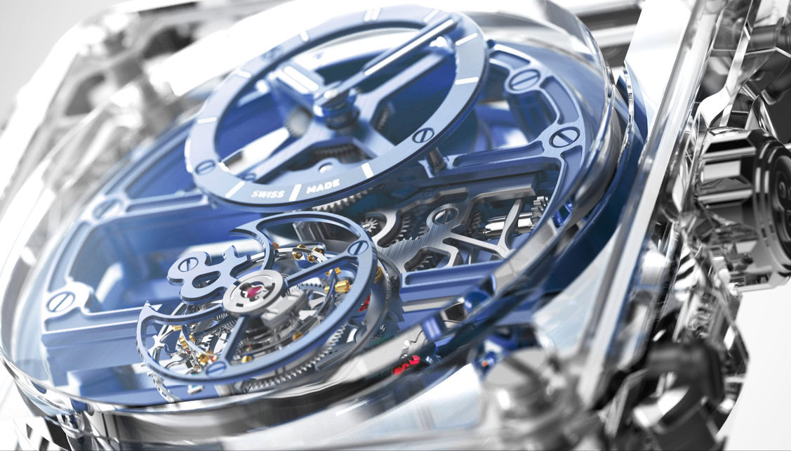 The BR-X1 Skeleton Tourbillon Sapphire is a thing of beauty. Boasting of a full case cut from five blocks of sapphire, a hand-wound skeleton flying-tourbillon movement, as well as a dial, plates, hands, screws, and bridges that simply dazzles from its unique finish. Essentially, you will be able to marvel at the intricate inner workings of the watch through the transparent housing. This labour of love and manifestation of pure passion for the craft achieves a brilliantly entrancing โfloatingโ aesthetic.