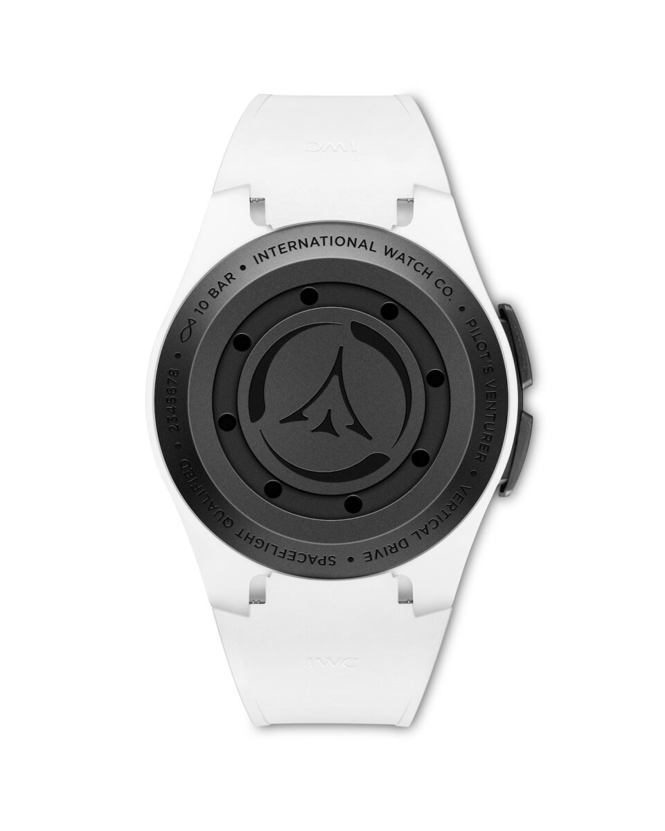 Crafted from a combination of both ceramic and IWC’s proprietary Ceratanium, the case measures 44.3mm in diameter and a sensible 16.7mm thick and is paired with a white FKM rubber strap (both thermally insulating and UV resistant). It’s powered by the bulletproof IWC-manufactured calibre 32722 with 120 hours of power reserve, and in a sensible move (though perhaps unnecessary for outerspace), it’s water resistant to 100m.