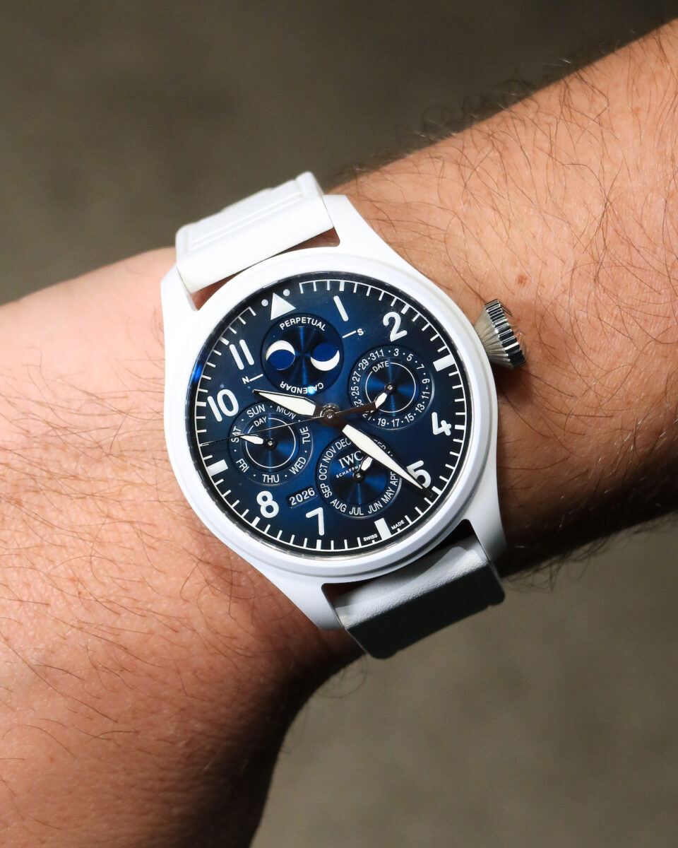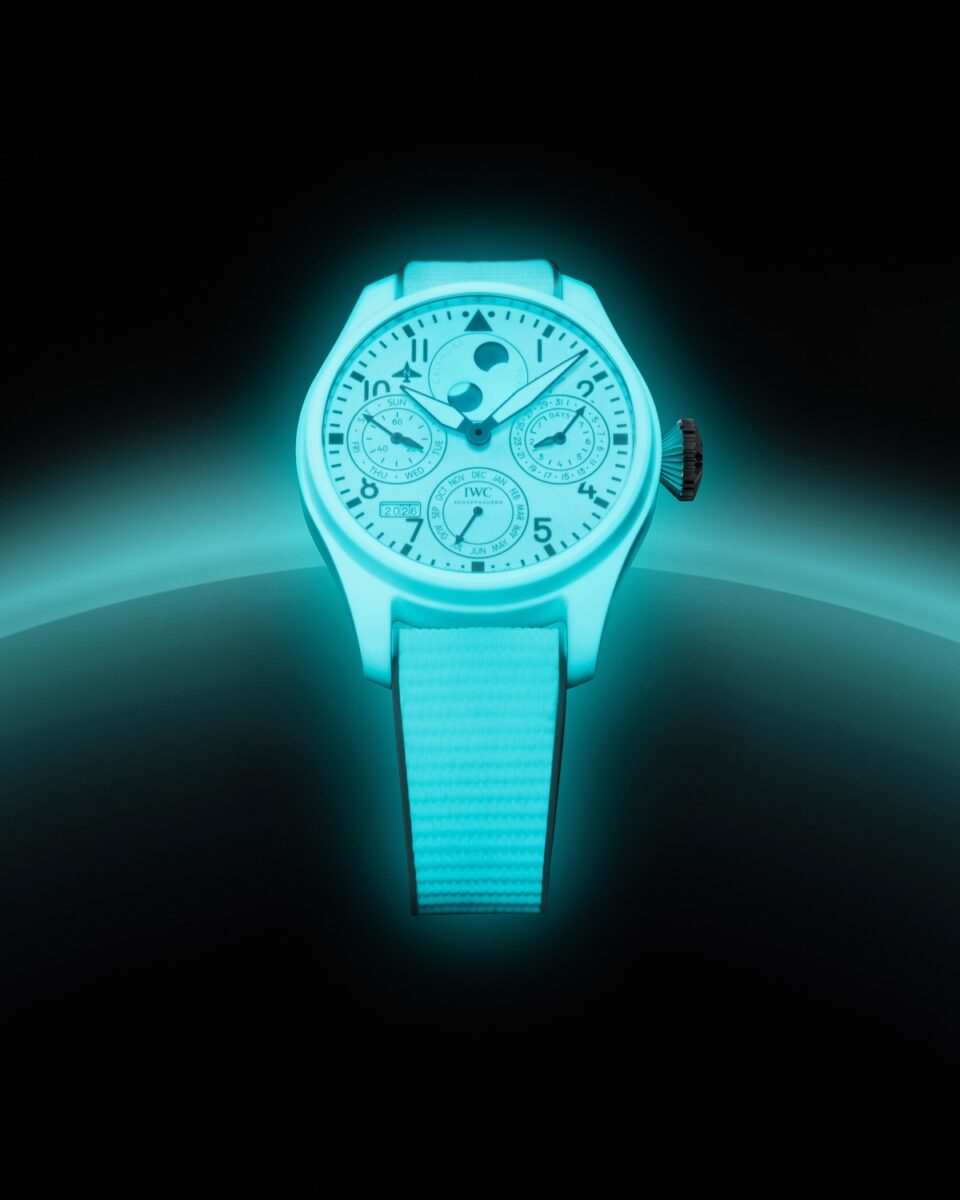 The IWC ProSet system innovation isn’t the only thing on the menu for perpetual calendar lovers, however, with the watchmaker also announcing the arrival of the Big Pilotโs Watch Perpetual Calendar Ceralume. In short, this thing glows like the sun on your wrist, with the entire case constructed from Ceralumeยฎ white luminous ceramic and an equally brightly glowing dial.