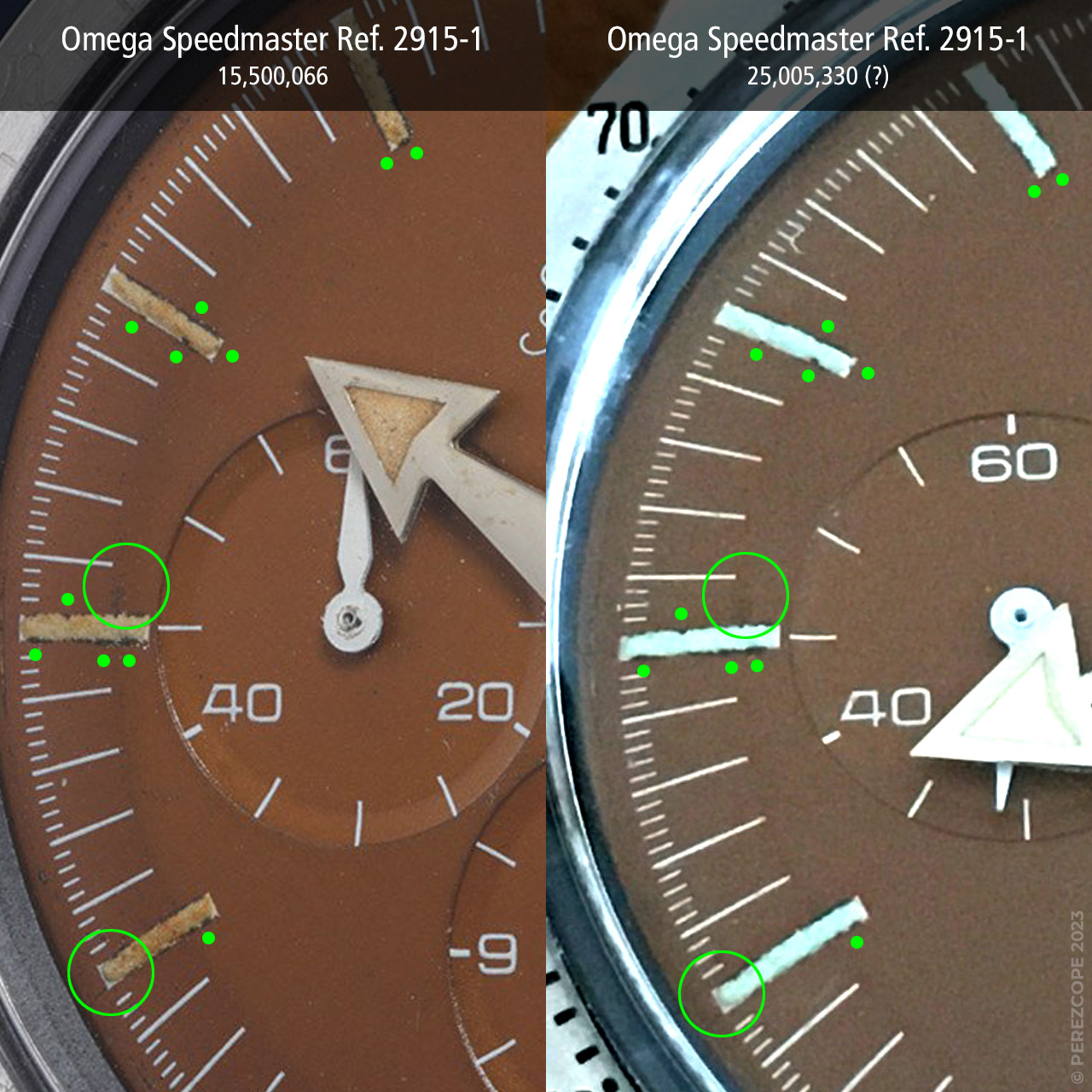 The dial was refinished to achieve the seemingly unbelievable even brown โpatinaโ tone of the watch sold by Phillips. The chronograph hand was also replaced and the bezel was swapped out, taken from a different Speedmaster that was also sold by Phillips a few years earlier. Most importantly to sell the Franken-watch, however, the serial number of the movement needed to be changed.
