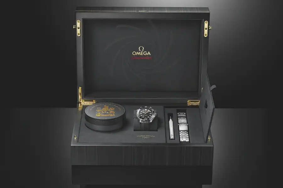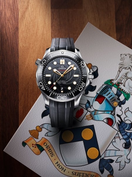 Perhaps the two coolest details are those only for the very astute observer. On the seventh day of each month, the number “7” in the date window uses the same font as the iconic “007” logo, and a number “50” hides on the 10 o’clock index, only appearing when the SuperLuminova comes to life in the dark.