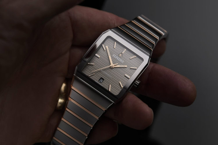 The Anatom’s HTC construction and square-ish geometry (what Rado watchmakers have described as “organically curvaceous”) ensured it was already famously comfortable in the ‘80s – contouring to most wrists in the general watch-buying public. Now, Rado has taken those ergonomics to an even more elevated plane: through the introduction of matching integrated bracelets, engineered with steel and HTC.