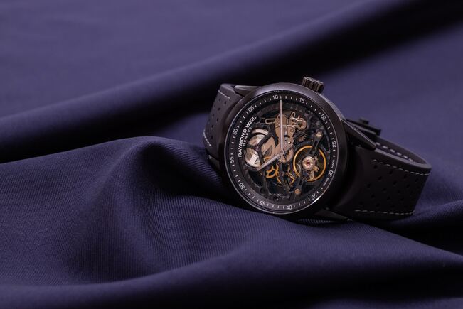 Named RW1212 after the postal code of RAYMOND WEILโs Geneva headquarters in the suburb of Grand-Lancy, the calibre is best distinguished by the 6 oโclock dial-side positioning of its regulating organ, where the balance-and-spring construction is located above the main-plate and held in place by two bridges. The build is simple and, upon a cursory glance, could be mistaken for a tourbillon. Yet the smaller details are incredibly complex, with everything from the diamond-polished balance wheel and skeleton bridges worked precisely to offer improved visibility through the watchโs partially open-worked dial.