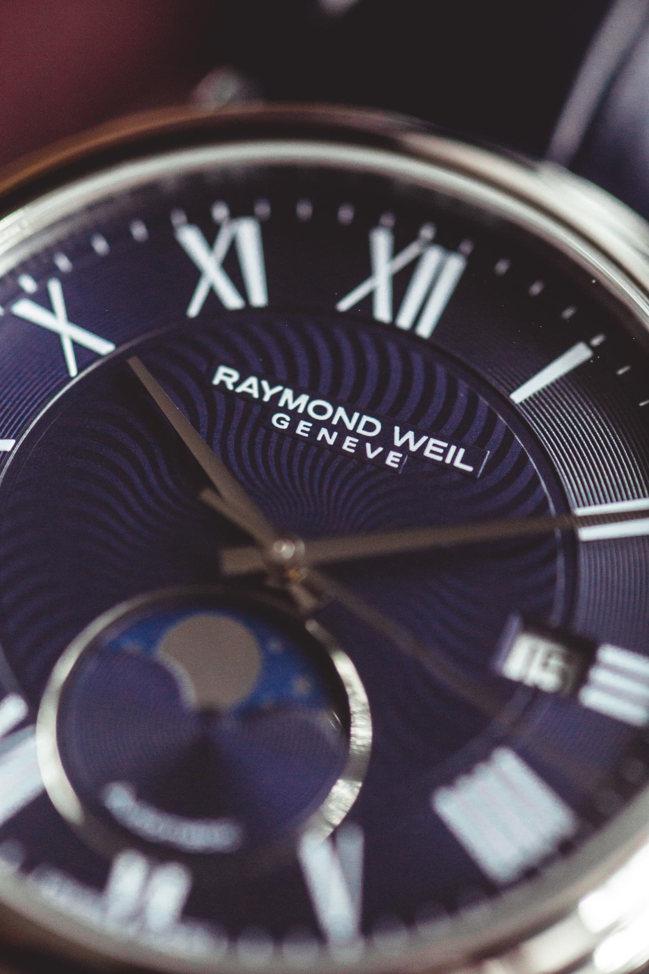 Check out the Raymond Weil Maestro Moon Phase here. You can also add in one of their iconic Parsifal collection into the mix.