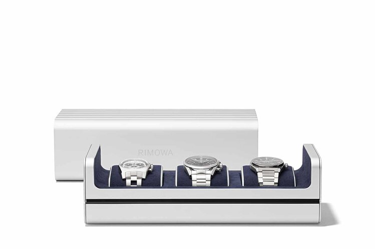 Fashioned as a premium protective case for three of your most prized wristwatches, the graceful piece has been immaculately crafted to mirror the brandโs distinctive ribbed aluminium aesthetic, building on a legacy that now shoots back more than 120 years to when RIMOWA was first founded in Cologne.