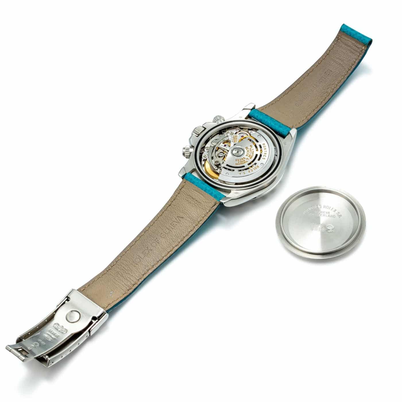 What makes this particular Rolex special? Apart from being the only known platinum Daytona with a lapis lazuli hard stone dial, this watch is apparently โhistorically importantโ. Manufactured around 1999, it places this hot ticket item towards the end of an era when Rolex used Zenith El Primero automatic movements in Daytonas. This cal. 4030 movement also features 31 jewels. And lets not forget just how rare platinum Daytonas are.