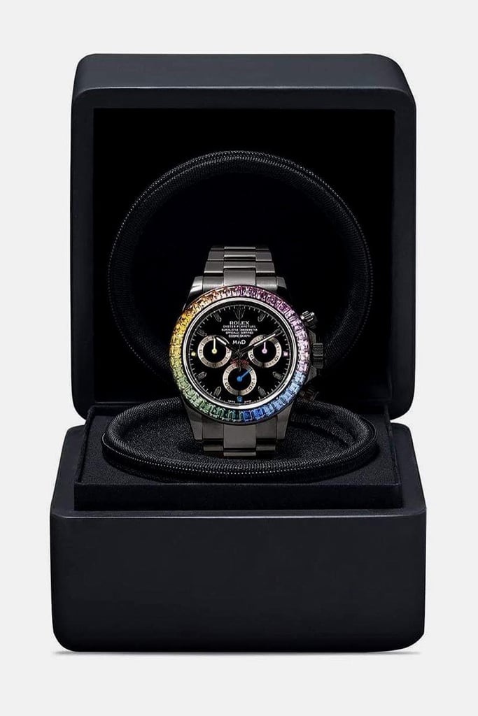 Luxury aftermarket watch customiser MAD Paris has gifted the world with this extremely limited edition Rolex Sapphire Rainbow Daytona watch.