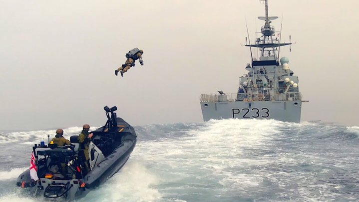 WATCH: British Royal Marines Use A Jet Suit To Board HMS Tamar