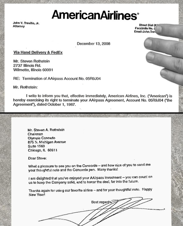 In 2008, Steven Rothstein checked in at Chicago OโHare International Airport with a mate when American Airlines hand-delivered a letter to inform him that his AAirpass had been terminated due to โfraudulent behaviour.โ