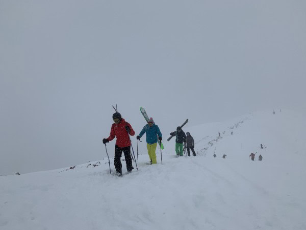 Itโs a solid 45 minute hike in ski boots with a perilous ridge either side โ and youโll be completely spent when you get to the top โ but hiking the bowl is all worth it when you take in the spectacular views and enjoy some of the most exhilarating skiing youโve ever done. The slopes are also managed daily Ski Patrol (if they need to bomb) to mitigate the risk of avalanche. Do not attempt if youโre not a confident skier or rider.