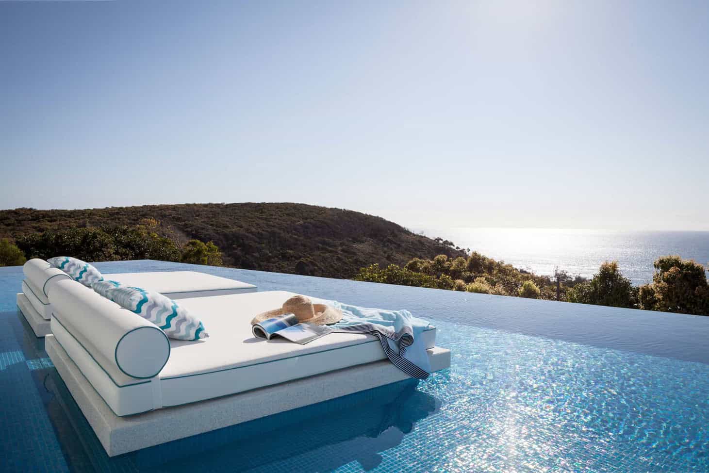 The innocent white emphasises cleanliness and perfection, whilst its blue trimmings accentuate the house’s many water features. The best of these water features, of course, being the sprawling Pacific Ocean beginning from the sands of Sunshine Beach’s north end. An unobstructed view, of course.