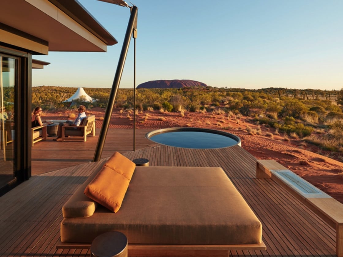 There is no other hotel pool in the world quite like the one at Longitude 131. Although its uniqueness is entirely owed to the iconic Uluru, with the impressive sandstone monolith playing the background to the sparkling, modestly sized pool โ one of the best in Australia and certainly the most symbolic.