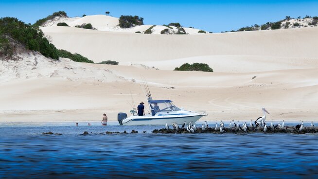Another special activity sure to elevate your heart rate is cage diving with great white sharks โ Coffin Bay is one of the few places in the world where this is even possible. Sure, this is one of the few things to do where you donโt want the unexpected to happen, but that doesnโt mean coming face-to-face with an ocean apex predator is something you want to miss out on. If above water is more your thing, a sunset fishing charter is the perfect way to farewell any day.