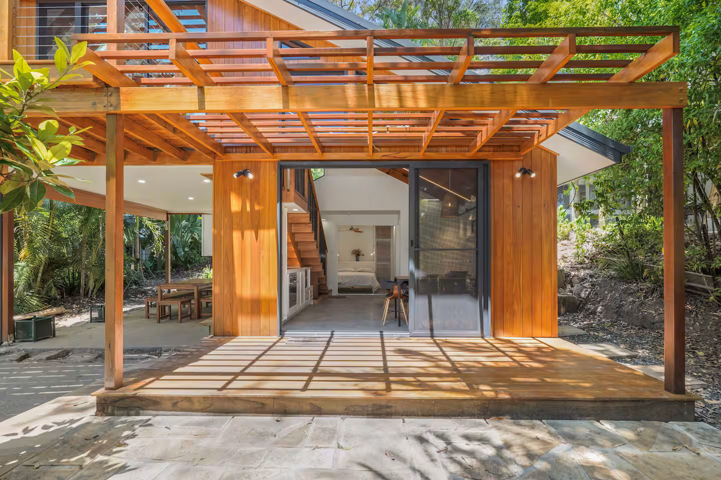 Private, peaceful, and set away from the road, you can expect open-plan living, a bedroom with garden views, and an airy loft with a balcony. Step beyond the floor-to-ceiling doors and youโll find sandstone steps, a sun-drenched deck, and a Weber BBQ.