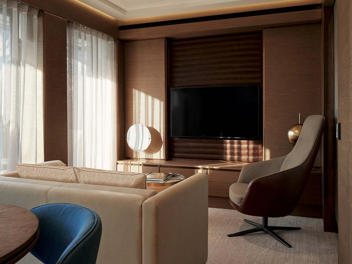 Those suites arenโt all uniform. Some are standard cabins while others are massive two-storey apartments designed in a loft style. The pinnacle offering is the โownerโs suiteโ with a private hot tub and around 101-square-metres of living space.