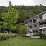 Brainchild of the Italian architects Bergmeisterwolf, the hotel’s harsh exterior is directly contrasted by its luxe interior which boasts furnishings of mostly wood, exuding warmer, earthly vibes throughout. This simple decor sandwiches the harsh concrete exterior between the lush orchards and vineyards enclosing the property.