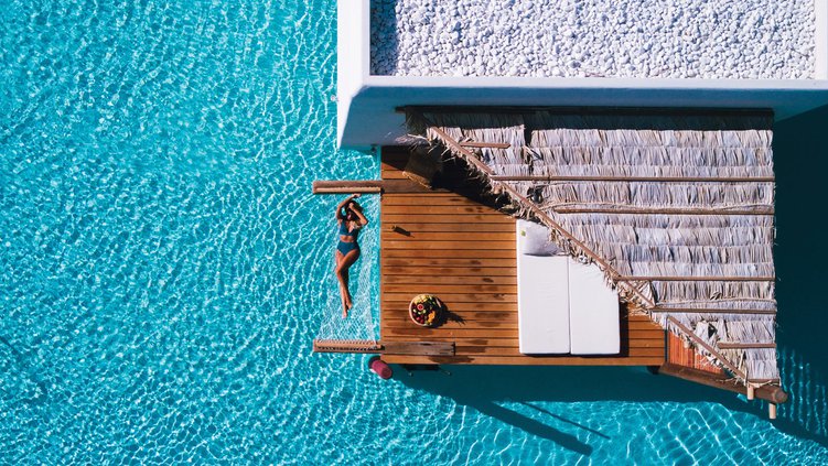 Stella Island Resort has all the trappings of your usual sanctuary to wellbeing โ indoor pools, Jacuzzis, spa treatments, hot stone massages, rejuvenation packages, stellar wining & dining options, etc. But the undisputed highlight setting it apart from the competition is the lagoon-style pool + lounge islands which spans across the entire resort, leaving ample room for each and every guest to find their own private corner; as well as the rather unique inclusion of Overwater Villas & Bungalows.