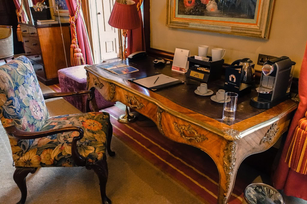 Driving through the gates and up the long driveway towards The Mansion is about as awesome as it looks in Layer Cake โ especially in an Aston Martin Vanquish. Check in happens directly inside the front door and the rooms are located through the double height ceiling lounge and up a staircase to the first floor. My room was enormous, stretching almost the entire length of The Mansionโs rear balcony overlooking the fountain in the courtyard below.