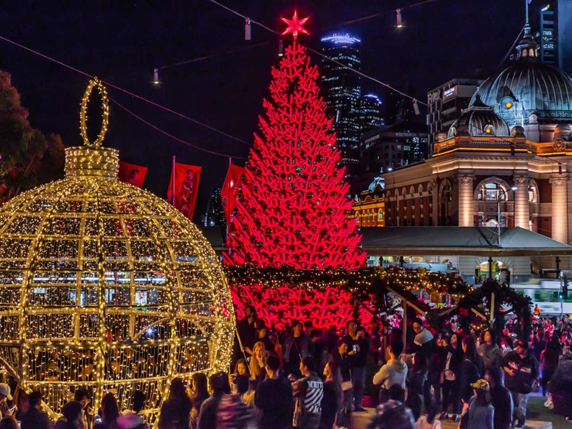 An emblematic 16.5-metre tall Christmas tree has been erected at Federation Square to kick things off and anchor the surrounding celebrations. In the immediate area, this includes a pop-up Santaโs Workshop and a family-friendly Christmas Carnival at Birrarung Marr with carnival games, food and drink stalls, as well as other activities designed for a bit of family-friendly fun in the midst of your usual Melbourne rush.