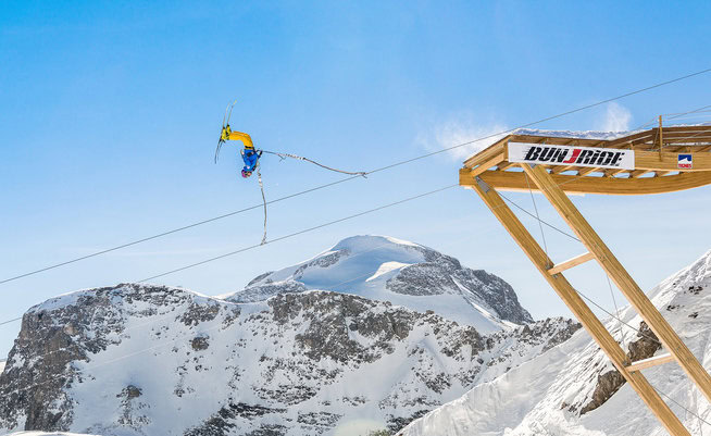 Located right near the Italian border, the Bun J Ride has fast become a staple for thrill seekers visiting the Tignes ski area since opening in 2014. Those that dare take the plunge can either ski, snowboard or sledge down the 30-metre length ramp attached to two bungee cords to keep you from flying off in all directions.