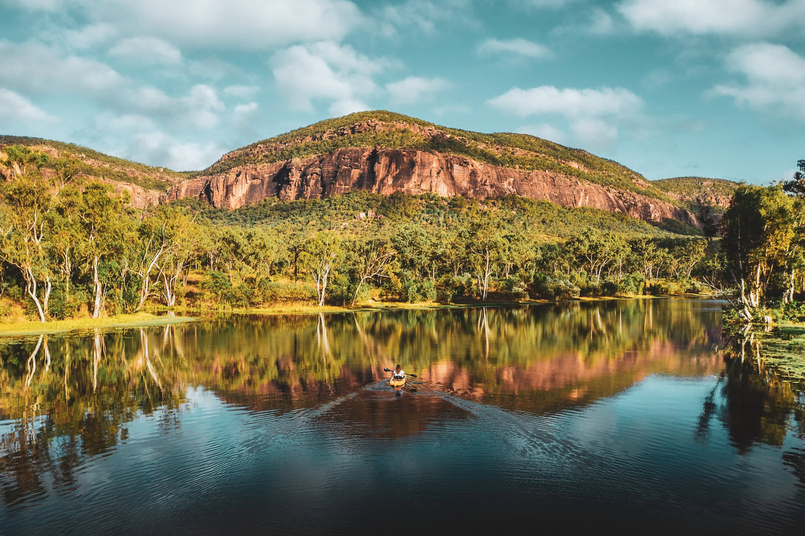 As tempting as it is to spend the rest of the afternoon by the pool, the lodge offers scenic helicopter flights for its guests, and the chance to witness Mount Mulligan from above is too good to resist (especially after the off-road car ride to get here). The landscape from above will leave you bewildered at the sheer scale of your surroundings. Returning to the lodge before the sun has set, the biggest decision youโll need to make is whether to choose a kayak or SUP to explore the sparkling weir as you lose count of the wallabies grazing by the banks.