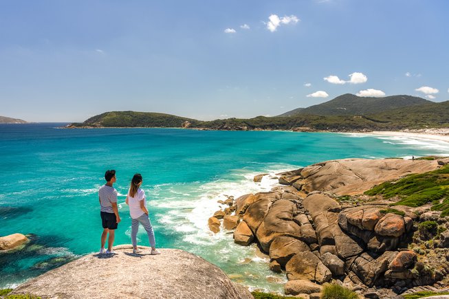 Squeaky Beach, as the name suggests, is a 500m stretch of perfectly squeaky white sand and stunningly blue water. The walk from the carpark to Squeaky Beach might just take the cake for your favourite beach reveal; a winding path of creeks, ferns and bushland with the occasional lizard, snake or wombat as your only road-blocks. With enormous granite boulders sitting pretty at the end of Squeaky Beach, if you’re keen for a cheeky rock climb (or just a general clamber), this is an idyllic spot to have a crack. Should Squeaky Beach be a little busy (and it can be), there’s a less-popular three-hour walk that alternates between sand and track at Squeaky and Norman beaches, Tidal Overlok, Picnic Bay and Whisky Bay. It’s fair to say you’ve got choices.